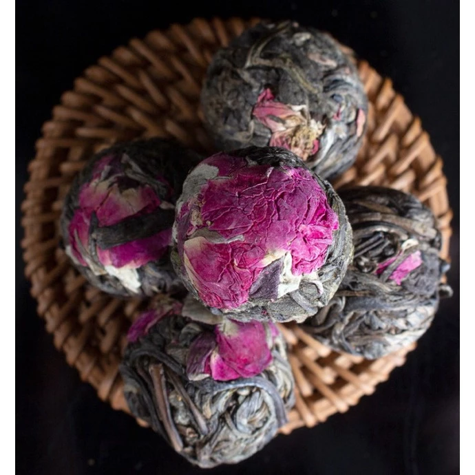Dried Double Rose Long Zhu Flower (100g) combines the beauty of rose blossoms with the elegance of tea leaves rolled into pearl-like shapes. When steeped, the pearls slowly bloom, releasing a fragrant floral aroma and a mild, naturally sweet flavor. This tea offers a soothing drinking experience, perfect for relaxation and special gatherings. Rose tea is also known for its skin-enhancing and mood-lifting properties. The 100g pack contains enough to prepare multiple servings, making it suitable for personal enjoyment or as a charming gift for tea lovers who appreciate visually stunning and aromatic herbal infusions.CHAR(10)Delight in the luxurious aroma and graceful beauty of Dried Double Rose Long Zhu Flowers (100 g)—hand‑rolled pearls crafted from premium double‑petal rosebuds. Gently dehydrated to preserve their vibrant blush color, delicate fragrance, and beneficial compounds, these exquisite blossoms unfurl into full‑sized roses when steeped, delivering a subtly sweet, floral infusion.